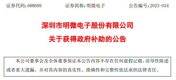此前,明微电子股份也披露了《关于获得政府补助的公告》,然因工作人员疏忽,公告所披露的收到政府补助款项被错误写为共计人民币230.95元,闹了“大乌龙”。
