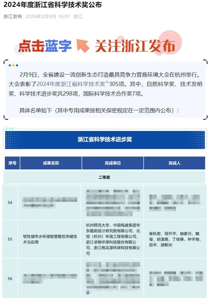 捷报传来,载誉前行!由公司参与完成的“韧性城市水环境智慧管控关键技术与应用”项目,成功斩获2024年度浙江省科学技术进步奖二等奖,用硬核技术实力,彰显环保企业的创新担当!