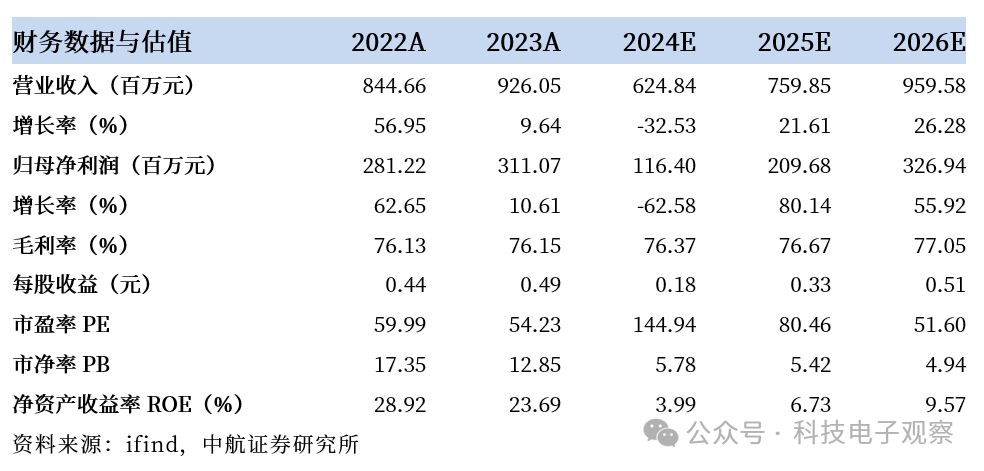 公司持续推进产品技术的研发与储备,深入开拓市场与客户资源,但短期内业绩仍受到了一定的影响和冲击。看好公司对前沿技术制定的前瞻性布局和规划。预计2024-2026年分别实现归母净利润1.16亿元、2.10亿元、3.27亿元。当前股价对应PE分别为144.94、80.46、51.60倍。考虑到公司在研项目带来的估值和业绩弹性,维持公司“买入”评级。