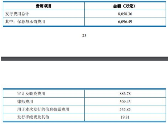 宏微科技本次公开发行新股的发行费用总额为8058.36万元(相关费用均为不含税金额),其中,保荐机构民生证券股份有限公司获得保荐与承销费用6096.49万元。