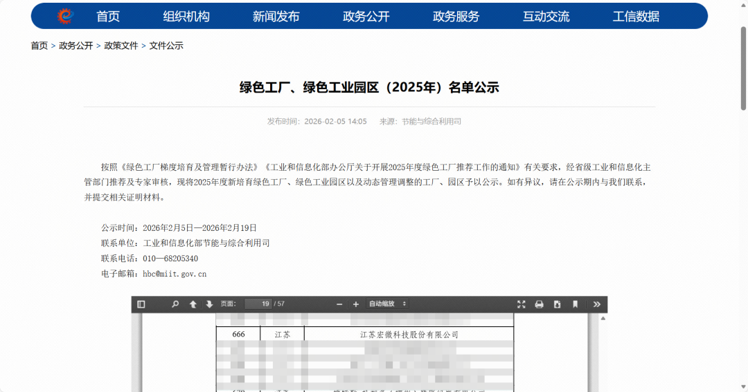 近日,工信部公示2025年国家级绿色工厂、绿色工业园区名单,宏微科技成功获评“国家级绿色工厂”。