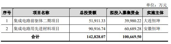 公司最终募集资金净额比原计划少1.15亿元。恒坤新材2025年11月13日发布的首次公开发行股票并在科创板上市招股说明书显示,公司拟募集资金100,669.50万元,用于集成电路前驱体二期项目、集成电路用先进材料项目。