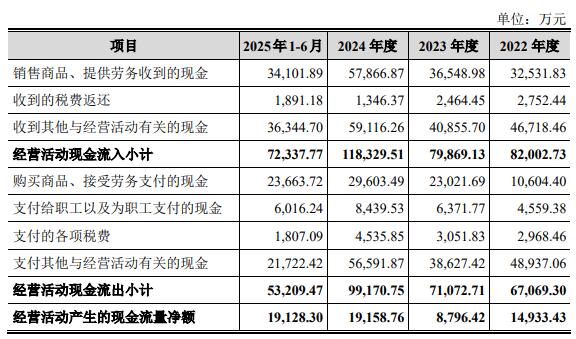 上述同期,公司销售商品、提供劳务收到的现金分别为32,531.83万元、36,548.98万元、57,866.87万元、34,101.89万元;经营活动产生的现金流量净额分别为14,933.43万元、8,796.42万元、19,158.76万元、19,128.30万元。