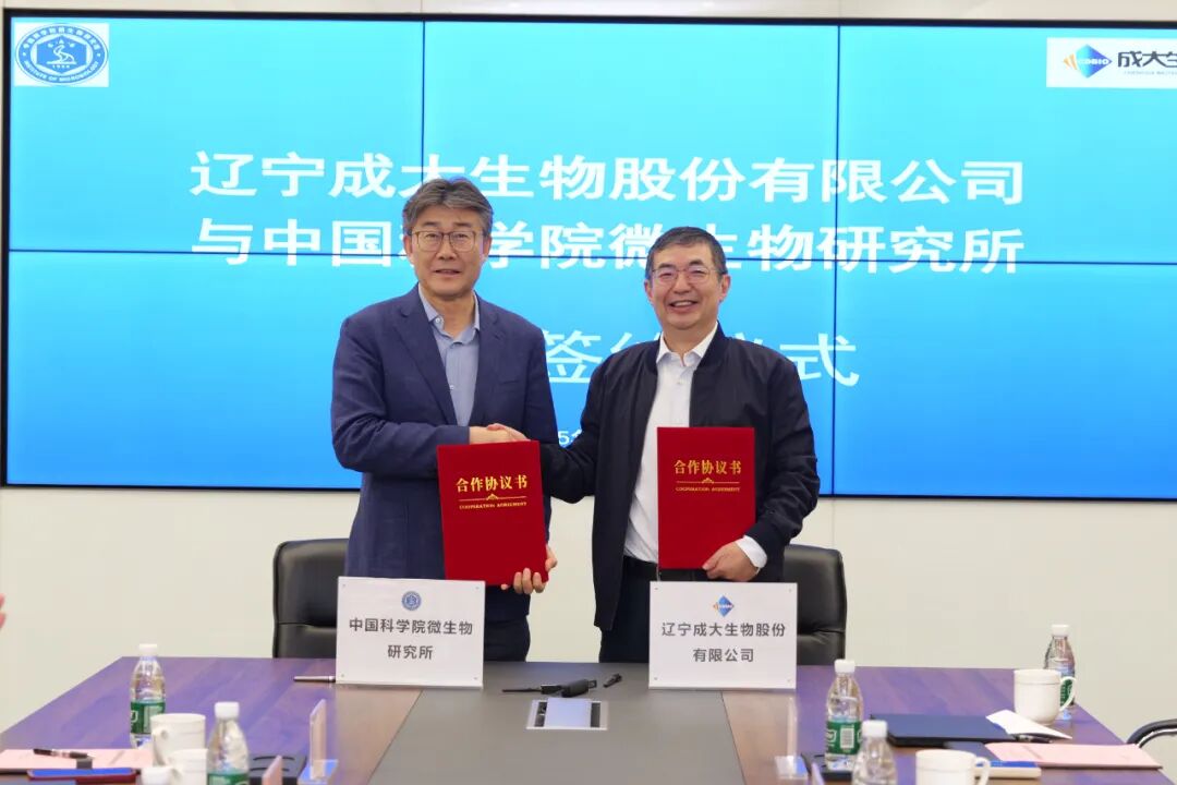 高福院士与李宁董事长分别代表中科院微生物研究所及辽宁成大生物股份有限公司,郑重签署了合作协议,与会领导、专家合影留念。