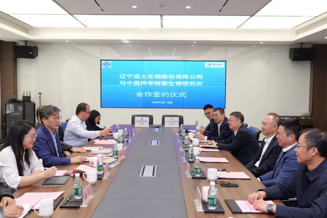 2025年10月21日,辽宁成大生物股份有限公司与中国科学院微生物研究所举行合作协议签约仪式。双方将共建“合成免疫学与疫苗智造北京重点实验室”,打通从前沿基础研究到产业化应用的关键路径,聚焦新发、突发传染病,特别是虫媒传染病领域,开展深度合作。中国科学院院士高福及专家团队,沈阳市主管副市长,浑南区相关领导,辽宁成大股份有限公司、辽宁成大生物股份有限公司主要领导共同出席本次活动。