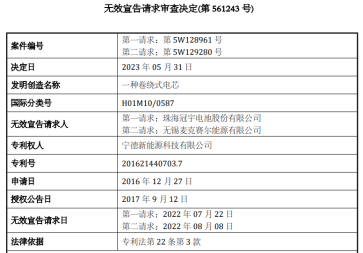 珠海冠宇被判侵权后,涉案专利被全部无效