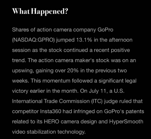 根据外媒分析报道,7月11日,ITC法官裁定,竞争对手影石创新Insta360侵犯了GoPro与其HERO相机设计和HyperSmooth视频稳定技术相关的专利。