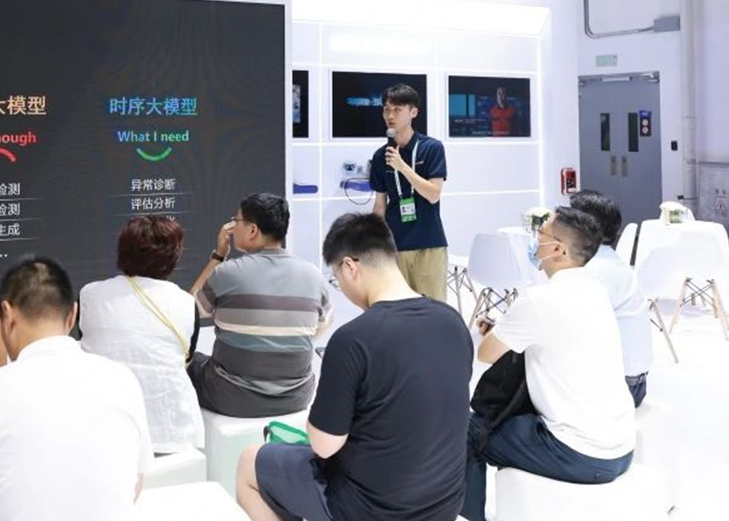 在技术分享环节,专家详细解读了TPT大模型的研发理念与技术内涵,全方位阐释了其以工业时序数据为核心,基于海量高质量工业数据集,通过数据采集、模型训练和场景微调等关键步骤,构建出具备感知-分析-决策-执行全链路能力的技术路径,并通过演示与互动体验,让与会者直观感受其在状态监测、健康评估、实时优化、知识问答等方面的卓越性能,以及在未来工厂自主优化运行中的关键价值。