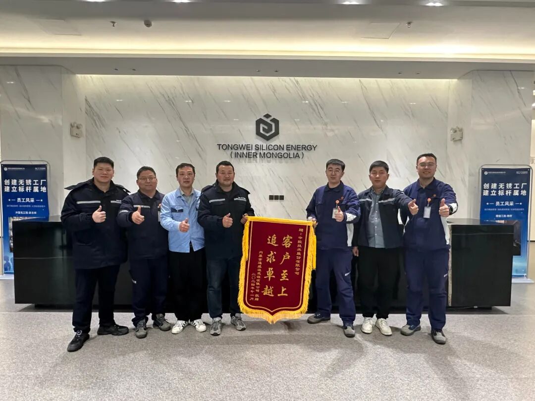 作为首次进入通威集团核心主装置的中国供应商,中控技术凭借出色的工程实施与服务质量赢得了客户的高度认可与赞扬。通威硅能源总经理游书华表示,在整个项目建设周期中,中控技术项目组是少有“未被批评的团队”,特别感谢项目组成员的辛勤付出,并向中控技术项目组授予了表扬信与锦旗。