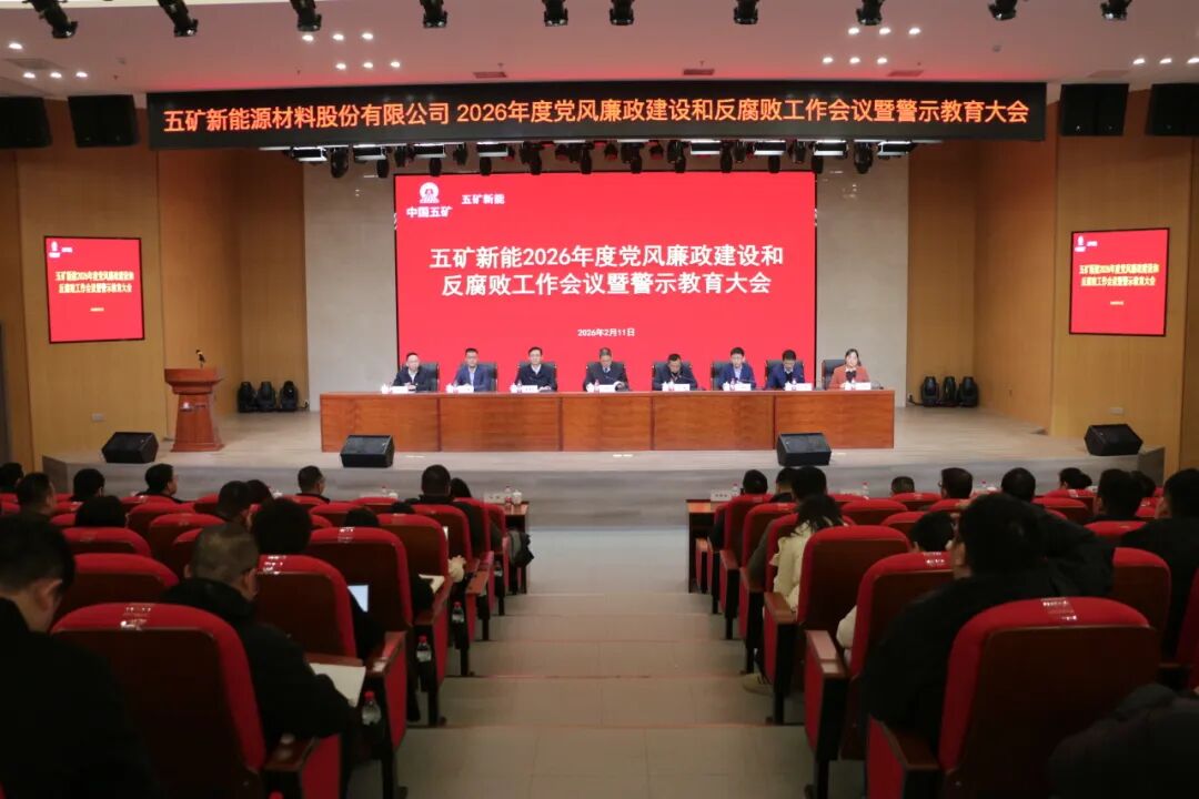 2月11日,五矿新能召开2026年党风廉政建设和反腐败工作会议暨警示教育大会,深入学习贯彻二十届中央纪委五次全会精神,认真落实中国五矿党风廉政建设和反腐败工作会议要求,总结2025年工作,开展警示教育,部署2026年重点任务。公司党委书记、董事长胡柳泉出席会议并讲话。党委副书记、总经理张臻主持会议。党委其他成员出席会议。
