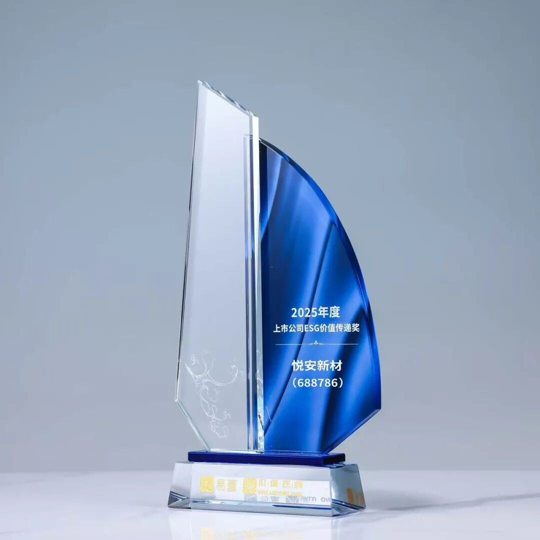 近日,“闪耀光明智见未来——中国AI赛道与ESG可持续发展大会”在深圳隆重召开。大会以科技创新与可持续发展深度融合为核心主题,对环境、社会和治理(ESG)领域表现突出的企业予以表彰。江西 悦安新材 料股份有限公司凭借在ESG领域的积极实践和价值理念的有效传递,荣获“2025年度上市公司ESG价值传递奖”。该荣誉的获得,是行业和社会各界对 悦安新材 长期坚持可持续发展道路、积极履行社会责任的权威认可。