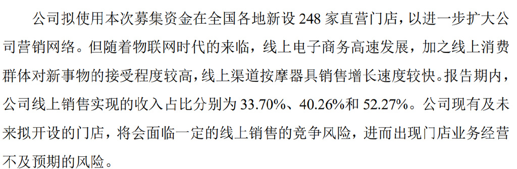 在此前的招股书中,倍轻松曾表示将使用募集资金开设248家直营门店,但按照现在的情况来看,这一目标会不会按原计划实现要打一个很大的问号了。