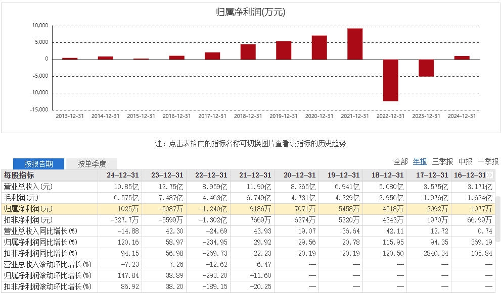 东财数据显示,2021年至2024年,倍轻松分别实现营收11.90亿元、8.96亿元、12.75亿元、10.85亿元,增速分别为43.93%、-24.69%、42.30%、-14.88%;同期,归母净利润分别为0.92亿元、-1.24亿元、-0.51亿元、0.10亿元,增速分别为29.92%、-235.46%、58.97%、120.16%;同期,扣非后归母净利润分别为0.77亿元、-1.31亿元、-0.56亿元、-0.03亿元,增速分别为22.33%、-270.85%、57.26%、94.15%。