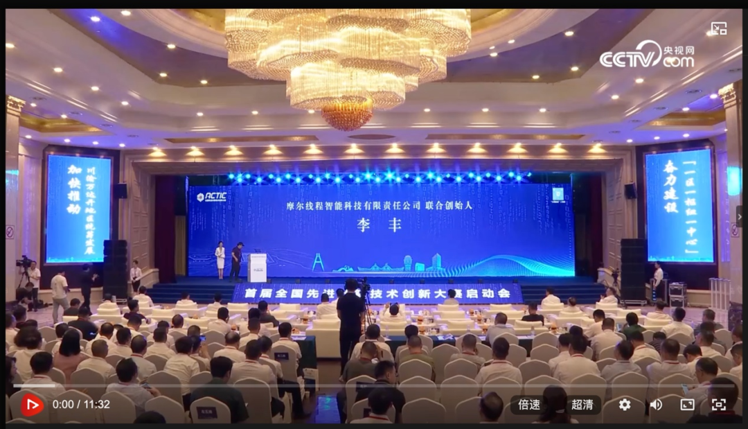 更耐人寻味的是,在2023年7月举办的首届全国先进计算技术创新大赛启动会上,转场介绍页面介绍李丰为“摩尔线程智能科技有限责任公司联合创始人”,李丰在上台时瞥了一眼但并未明确提出反驳,但在他演讲PPT的主页面只写了“摩尔学院李丰”。
