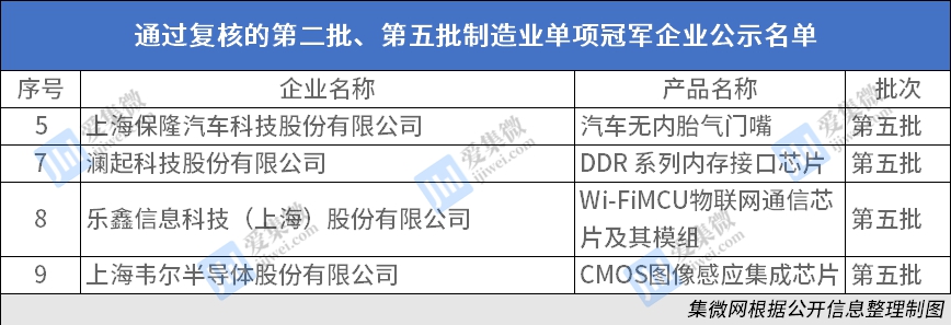 集微网消息,3月5日,上海市公布国家/工信部第八批制造业单项冠军企业和通过复核第二批、第五批制造业单项冠军企业名单。