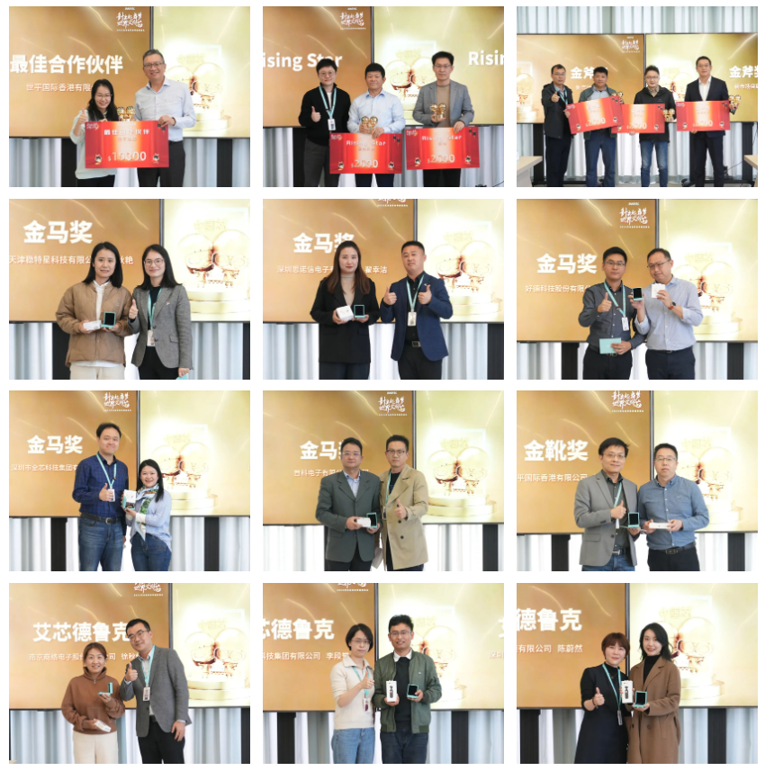 本次大会上艾为电子设立金马奖、金靴奖、艾芯德鲁克奖、金斧奖、Rising star、最佳合作伙伴6类奖项,以感谢合作伙伴们过去一年对艾为电子的大力支持,并预祝大家在新的一年继续携手共进,共创辉煌。