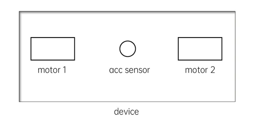双马达协同播放技术如下图示意,双马达对称放置,每个马达有单独的IC进行驱动。单频信号同时激励双马达时,由于软件调用或硬件差异,会导致两个马达输出的加速度存在频率差异或相位差异。