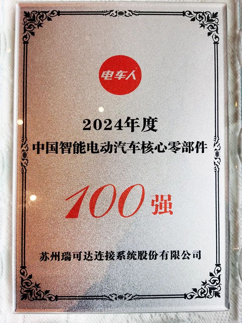 12月6日,2024第十一届电车人大会,正式发布了“中国智能电动汽车核心零部件100强”统计报告及研究成果,瑞可达凭借在新能源汽车连接系统方面的突出贡献,荣登核心零部件100强榜单。自2018年首次参评以来已连续七年获此奖项。