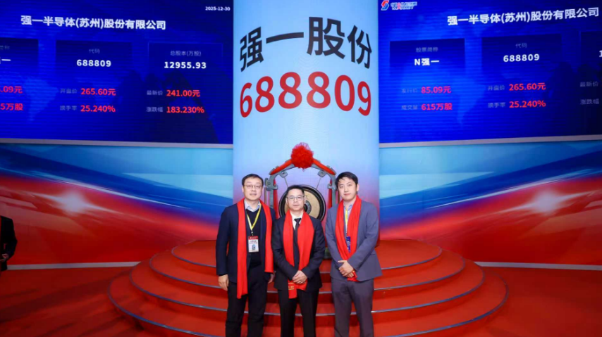 2025年12月30日,诺华资本已投企业,唯一跻身全球半导体探针卡行业前十大厂商的境内企业——强一半导体(苏州)股份有限公司(以下简称“强一股份”)在科创板正式挂牌上市,股票代码:688809,发行价85.09元/股。截止发稿,该股报149.89元,涨幅176.15%,市值达304.44亿元。