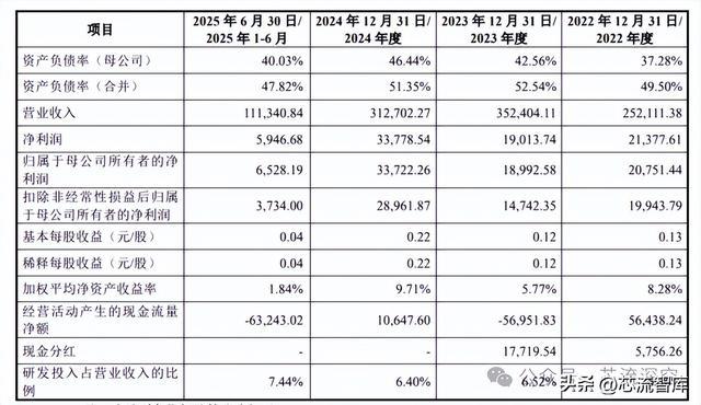 2022年至2025年上半年,其经营性现金流净额分别为5.64亿元、-5.70亿元、1.06亿元和-6.32亿元,呈现出盈利为正、现金流反复为负的特征。