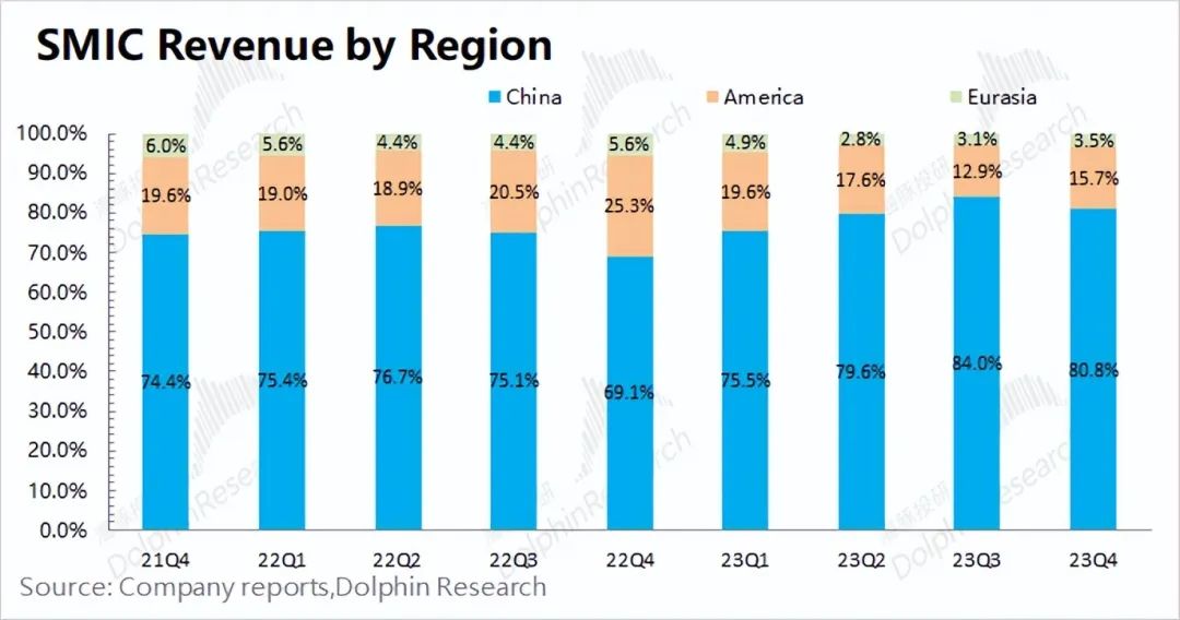 中芯国际重新调整了地区收入分布的口径,从原来的“北美洲/中国内地及香港/欧洲及亚洲”调整成了现在的“中国区/美国区/欧亚区”。由于口径的调整,数据上略有差异。