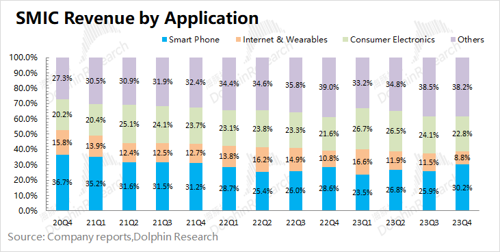 本季度中芯国际的智能手机业务收入占比为30.2%,有较明显的提升。这主要是由于四季度手机厂商发布新机,推动公司的手机业务也迎来回升。