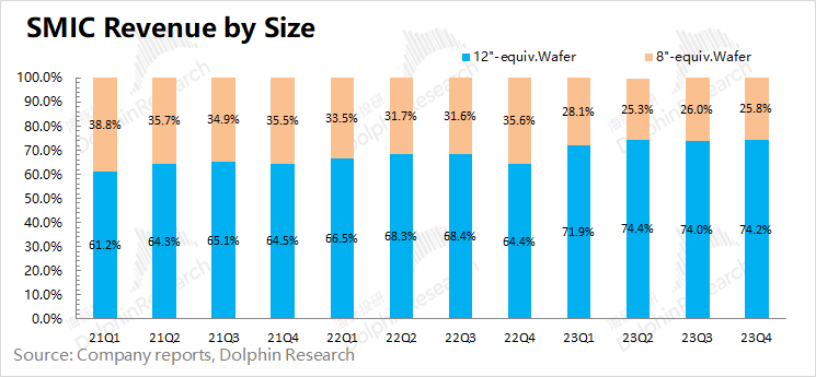 中芯国际从2022年一季度起不再披露各制程节点的收入占比,仅披露了8寸和12寸晶圆收入占比,这就无法细致地看到每个节点的收入变化情况。