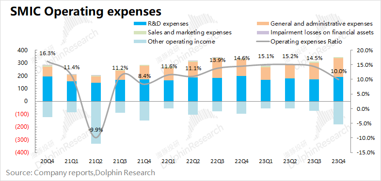 从经营开支角度看,本季度中芯国际经营开支是1.68亿美元,有所减少,主要是本季度其他经营收入增加所致。
