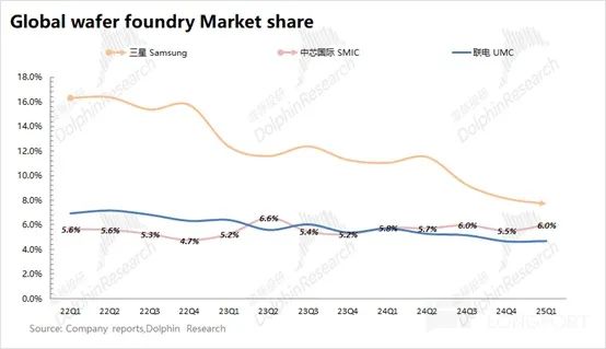 5、中芯国际下季度指引:公司预期 2025 年第三季度收入环比 5-7%,对应 23.2-23.6 亿美元,市场预期(23.7 亿美元);下季度毛利率 18-20%,市场预期(21.1%)。
