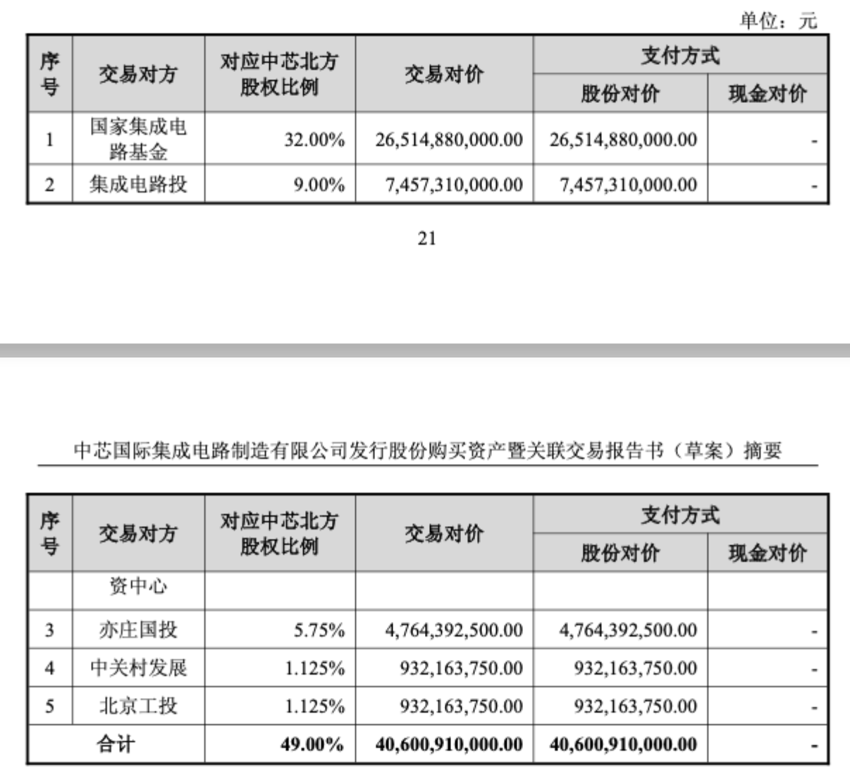 2月25日晚间,中芯国际发布公告称,其发行股份购买资产暨关联交易的申报文件已获上交所受理。公司计划向国家集成电路产业投资基金(国家大基金)、北京亦庄国际投资等五家机构发行股份,收购其合计持有的中芯北方49%股权,交易价格为406.01亿元。