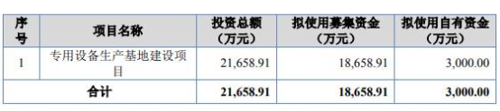 2022年12月9日,瑞奇智造发布的招股说明书显示,公司拟募集资金18,658.91万元,用于专用设备生产基地建设项目。