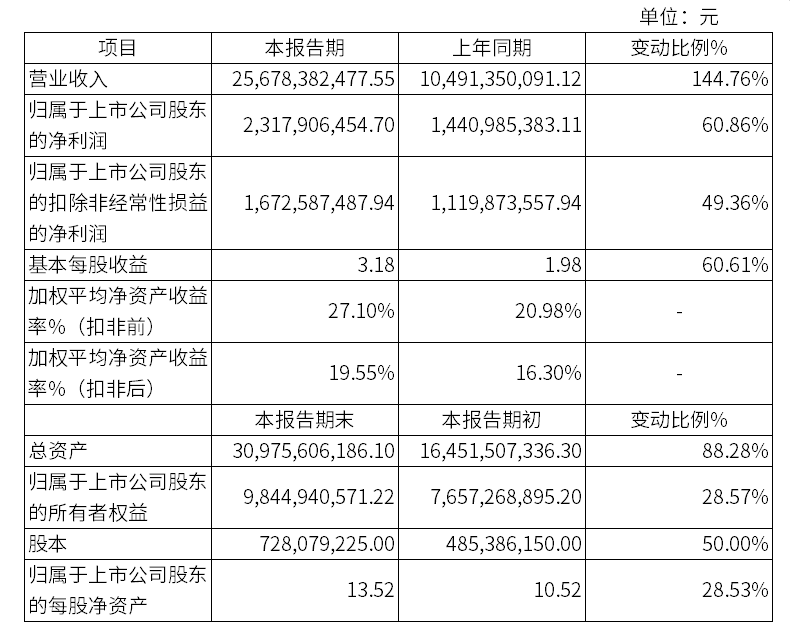 贝特瑞2022年度业绩快报显示,全球新能源锂离子电池需求强劲,公司充分把握市场机遇,扩大产能,持续开拓正极、负极材料市场,提升市场份额,实现产销量同比大幅增加。2022年,公司实现营业收入256.78亿元,同比增长144.76%;归属于上市公司股东的净利润23.18亿元,同比增长60.86%;归属于上市公司股东的扣除非经常性损益的净利润 16.73亿元,同比增长49.36%。