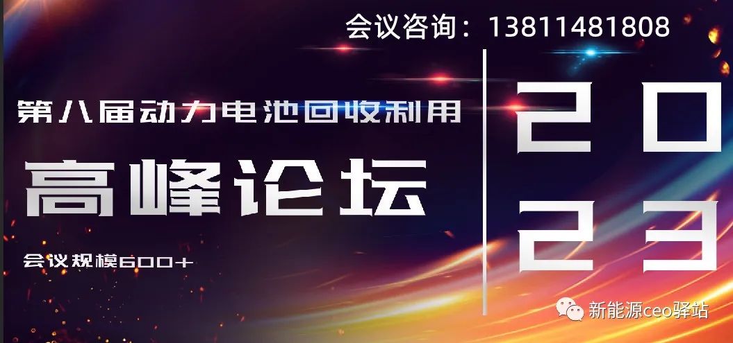预计2023年退役动力电池将达60万吨,2028年后动力电池退役将进入巨量时代,届时退役动力电池将达到四、五百万吨每年,未来我国动力电池回收市场空间较大。“第八届动力电池回收利用高峰论坛”将于2023年5月19-20日在江西省举办,诚挚邀请您和贵单位相关人员参加本次行业盛会。