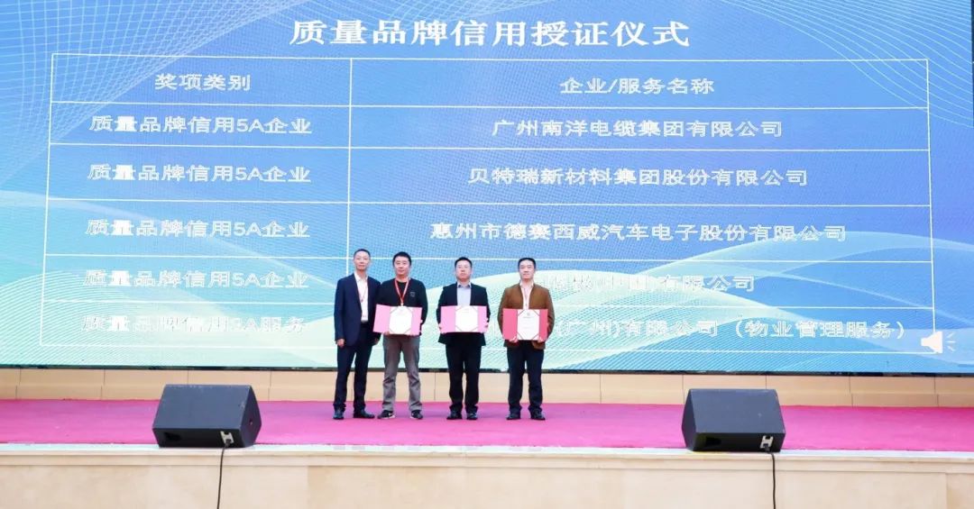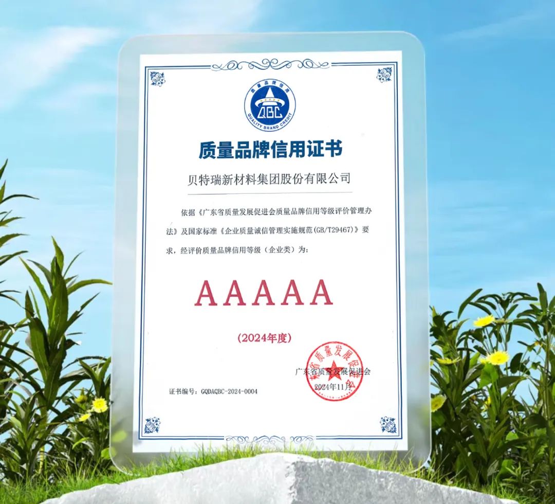 近日,贝特瑞获广东省质量发展促进会颁发质量品牌信用证书,质量品牌信用等级为“AAAAA”,为贝特瑞质量品牌信誉再添助力。