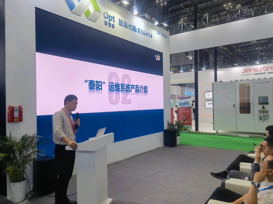 欧普泰产品经理曹家瑞在现场操作演示“泰阳”运维系统可视化监控及管理、AI智能工单及修复策略、低发电量单元分析及AI修复策略、AI运维分析报告等核心功能,观众得以直观感受“泰阳”的各项功能与特点。