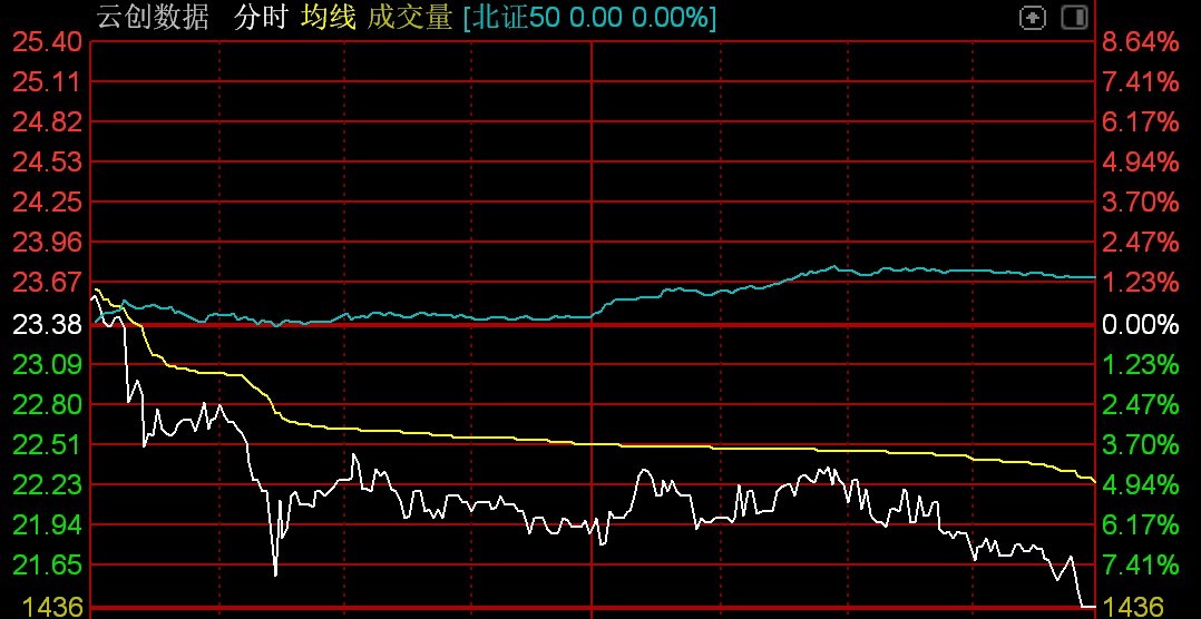 下跌方面,云创数据高开低走,尾盘跌超8%。