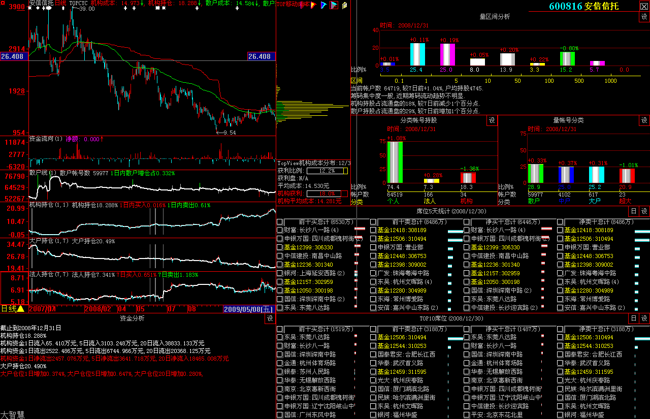 查股网将保留了安信信托 600816 2008年8月1号之后所有的topview赢富持仓帐户数和席位数据(查询地址为: