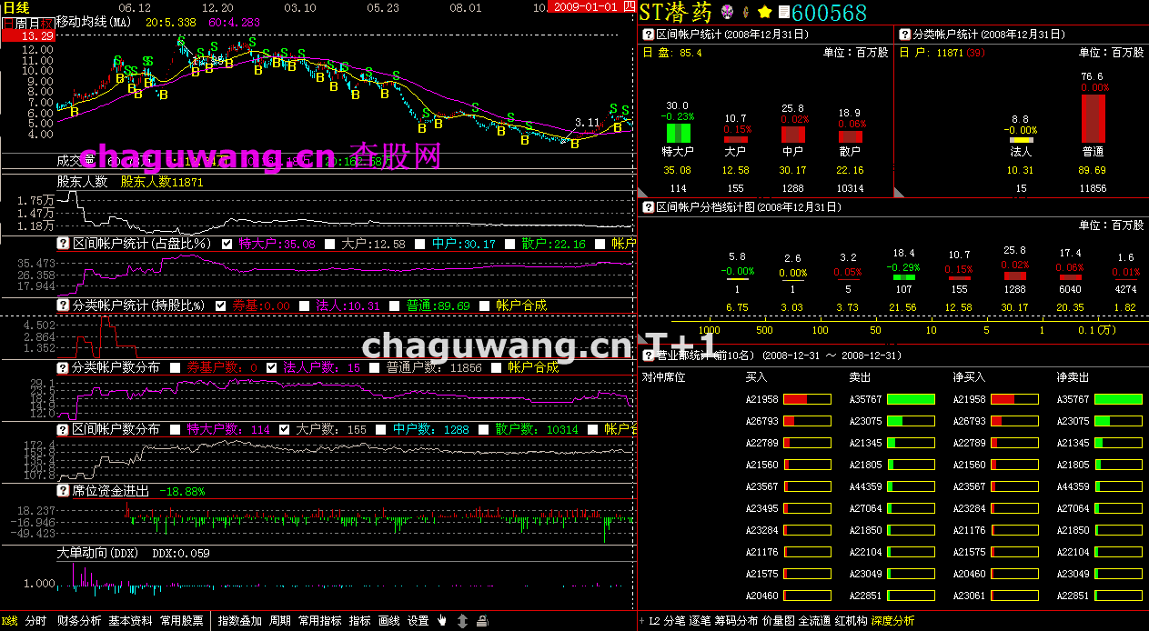由于上海证券交易所停止发布TopView赢富数据,查股网以后将发布600568 *ST潜药 的大智慧SuperView超赢数据和指南针TotalView全赢主力雷达静态版数据作为替代.