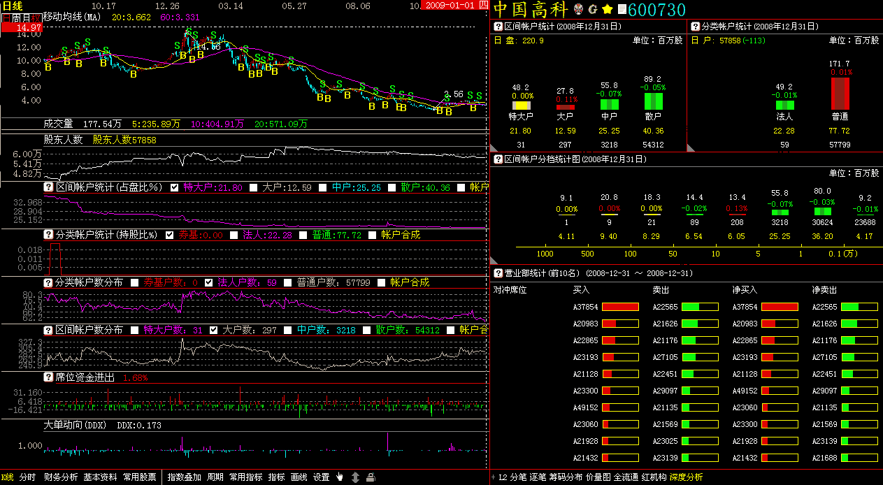 由于上海证券交易所停止发布TopView赢富数据,查股网以后将发布600730 中国高科的大智慧SuperView超赢数据和指南针TotalView全赢主力雷达静态版数据作为替代.
