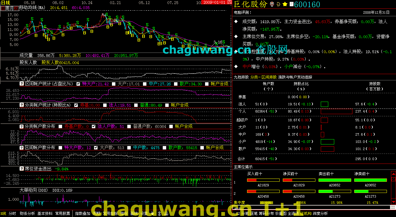 由于上海证券交易所停止发布TopView赢富数据,查股网以后将发布600160 巨化股份的大智慧SuperView超赢数据和指南针TotalView全赢主力雷达静态版数据作为替代.