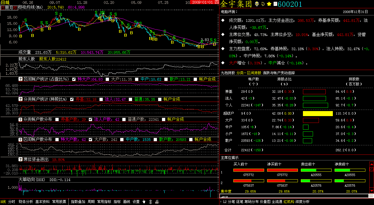 由于上海证券交易所停止发布TopView赢富数据,查股网以后将发布600201 金宇集团的大智慧SuperView超赢数据和指南针TotalView全赢主力雷达静态版数据作为替代.