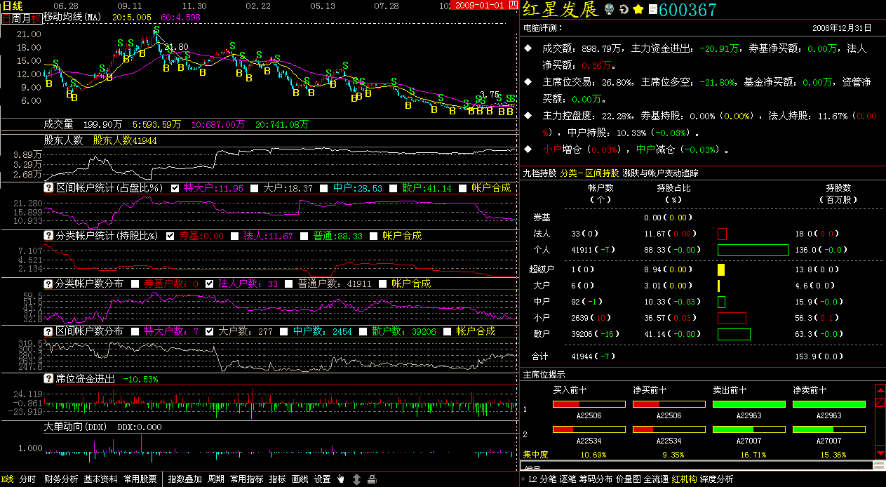由于上海证券交易所停止发布TopView赢富数据,查股网以后将发布600367 红星发展的大智慧SuperView超赢数据和指南针TotalView全赢主力雷达静态版数据作为替代.