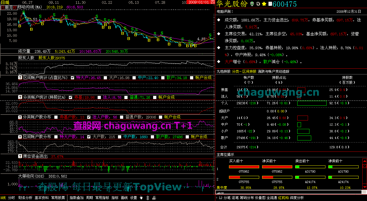 由于上海证券交易所停止发布TopView赢富数据,查股网以后将发布600475 华光股份的大智慧SuperView超赢数据和指南针TotalView全赢主力雷达静态版数据作为替代.