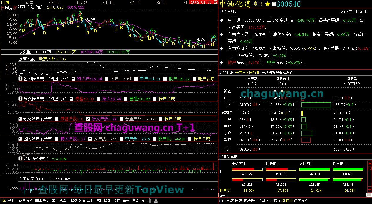 查股网将保留了中油化建 600546 2008年8月1号之后所有的topview赢富持仓帐户数和席位数据(查询地址为: