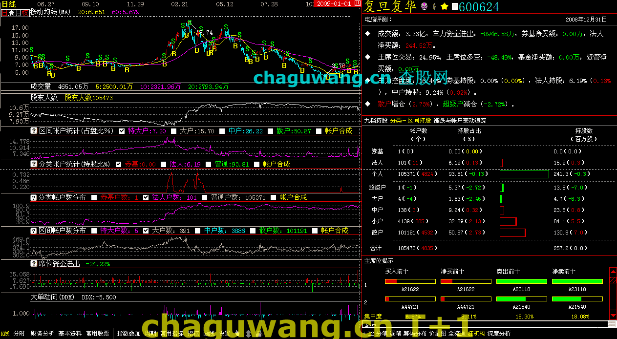 由于上海证券交易所停止发布TopView赢富数据,查股网以后将发布600624 复旦复华的大智慧SuperView超赢数据和指南针TotalView全赢主力雷达静态版数据作为替代.