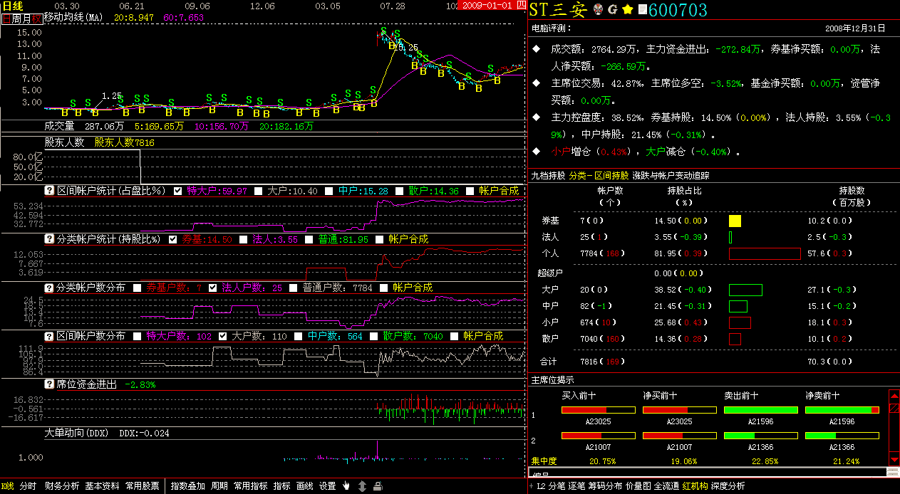 由于上海证券交易所停止发布TopView赢富数据,查股网以后将发布600703 ST三安 的大智慧SuperView超赢数据和指南针TotalView全赢主力雷达静态版数据作为替代.
