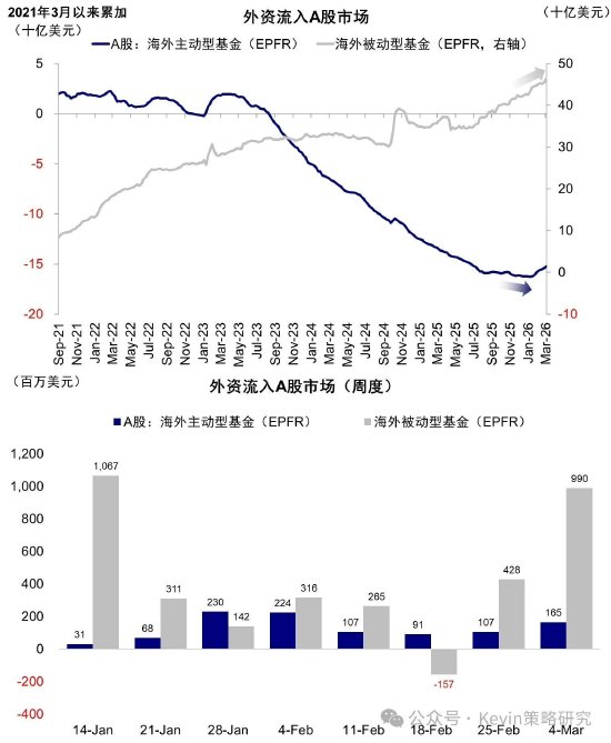 1??EPFR口径(截至周三),主动外资流出港股36万美元(vs. 上周流入2.6亿)、终结了七周流入,流入A股1.7亿美元(vs. 上周1.1亿)。
