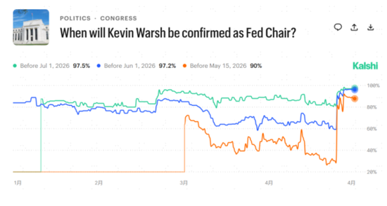 图表:当前市场预计沃什大概率于6月前正式就任美联储主席