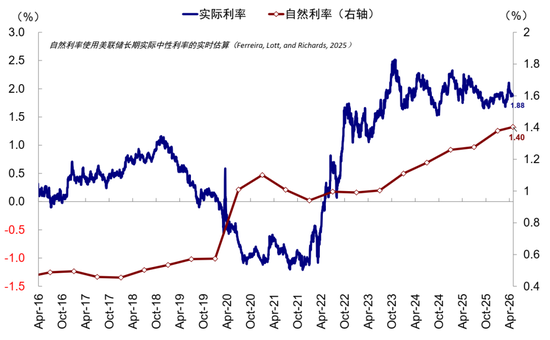 图表:当前美国实际利率和自然利率之间仍有50bp左右差距,对应2次降息
