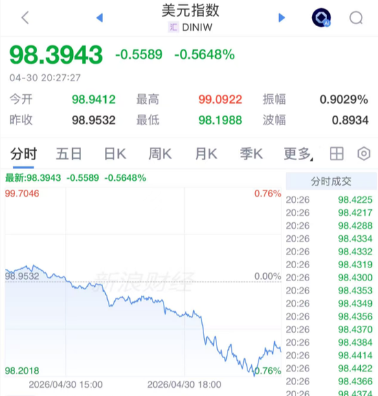 与此同时,美元指数跳水。